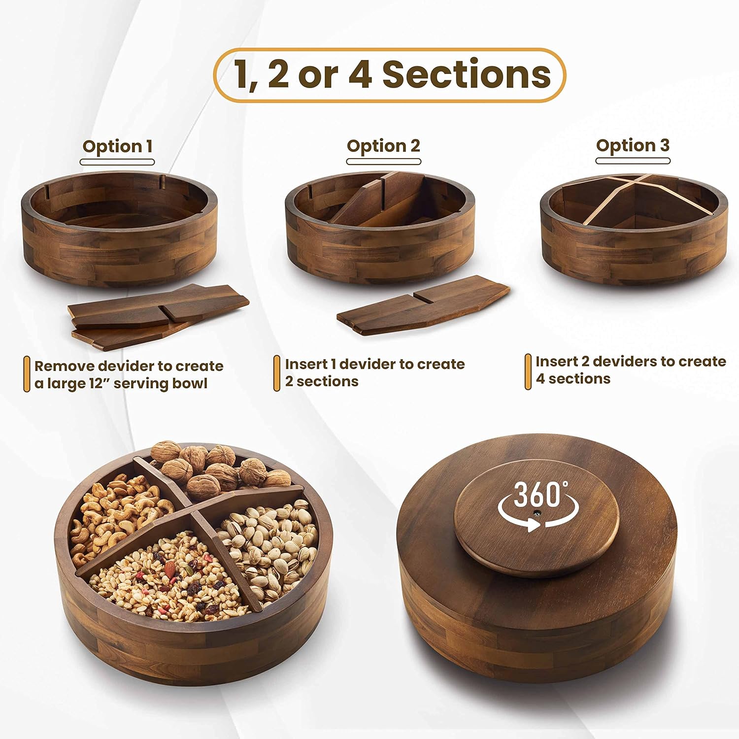 - Customizable Compartments: Easily adjust between 4 or 2 sections to accommodate spices, snacks, or multiple dishes. Perfect for use as a spice rack organizer, kitchen pantry turner, or tabletop server