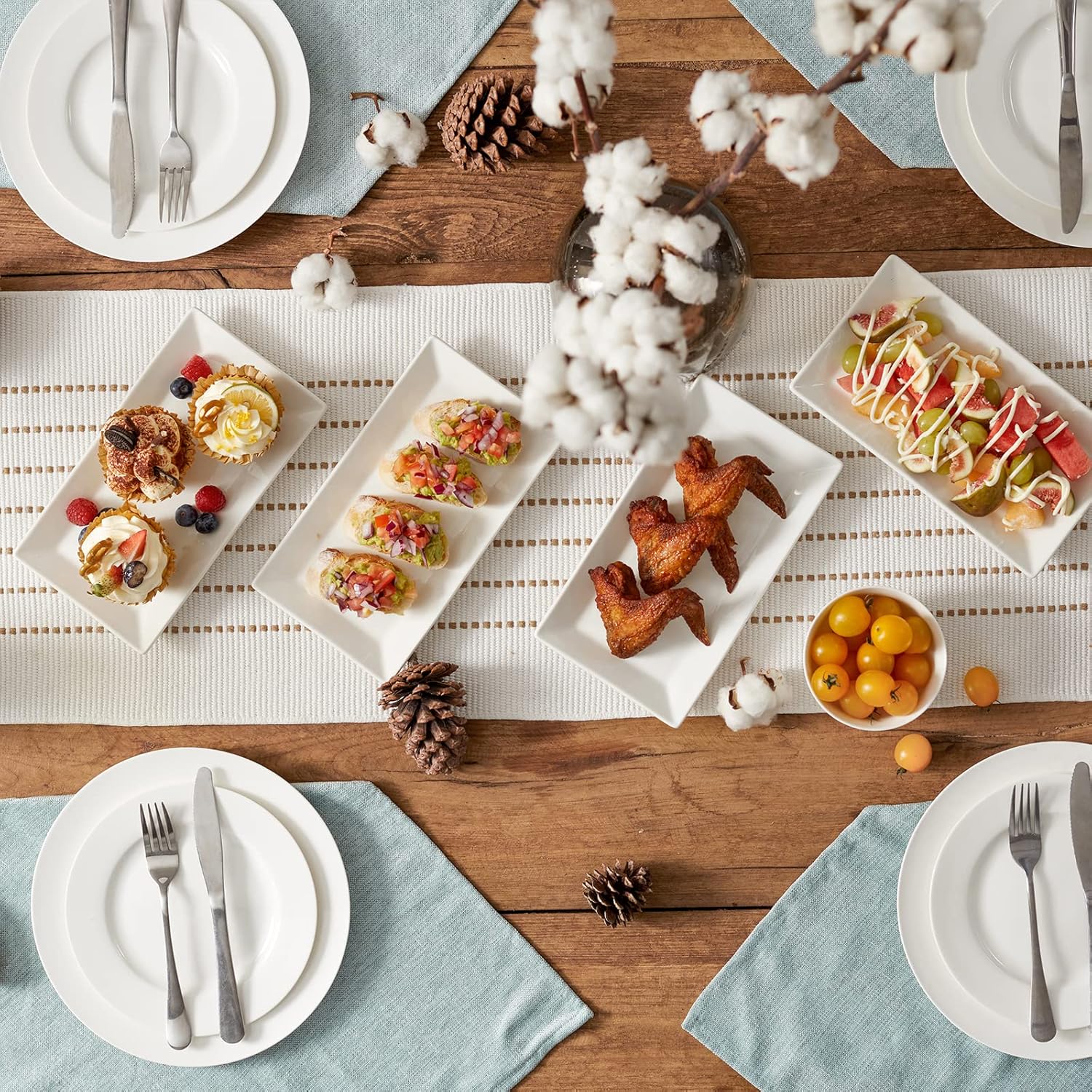 - No-Spilling Design – This rectangle plates is designed with an ergonomic rectangle shape and a narrow rim. The rim expertly frames each dish and helps prevent messes or spills by keeping foods and sauces contained on the white serving platters.