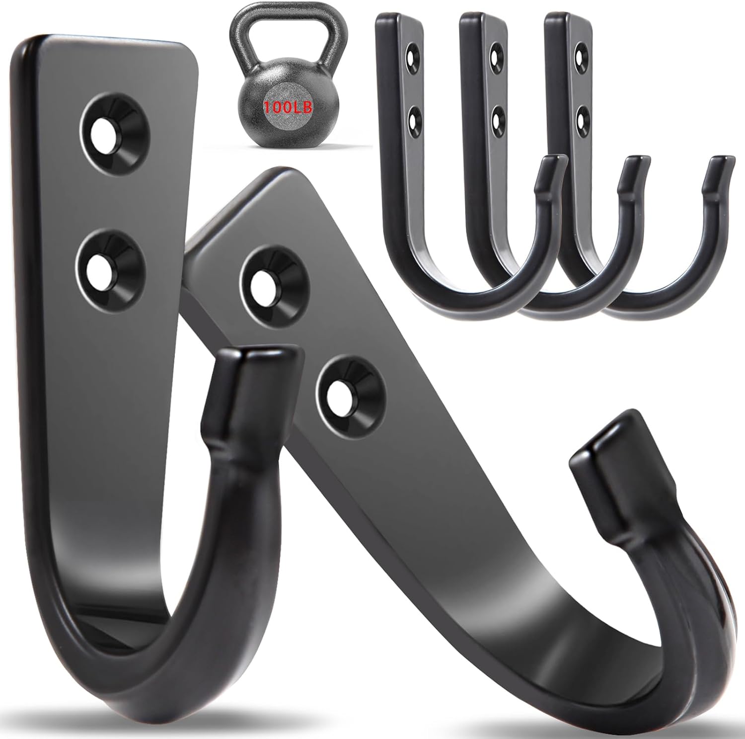 5 Large Size Heavy Duty Wall Hooks, for Hanging Pans, Backpacks, Coats, Garage Items (Black)
