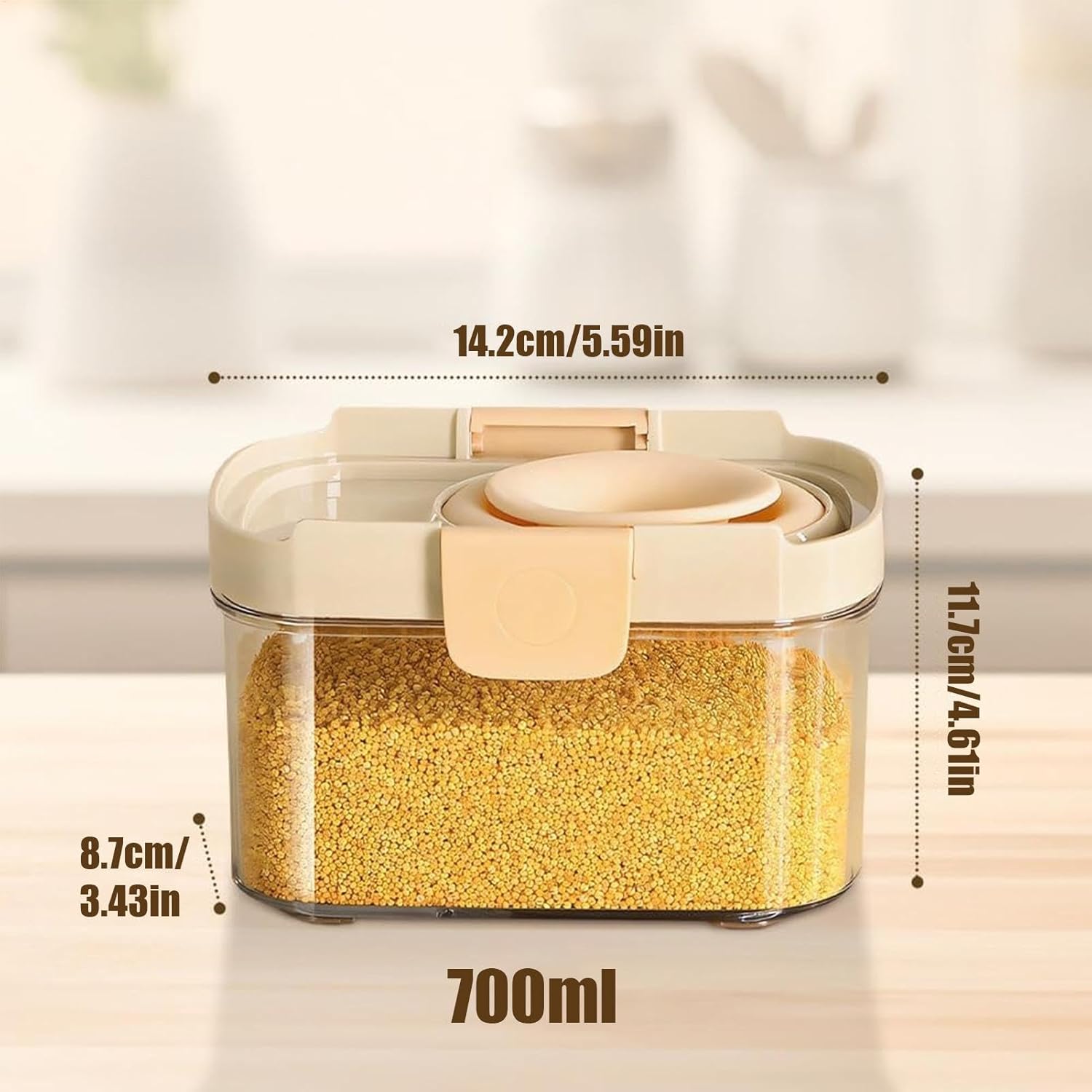 - Airtight Design: The airtight lids that food stays for longer by preventing moisture, air, and from getting inside, keeping grains, snacks, and tea protected.
