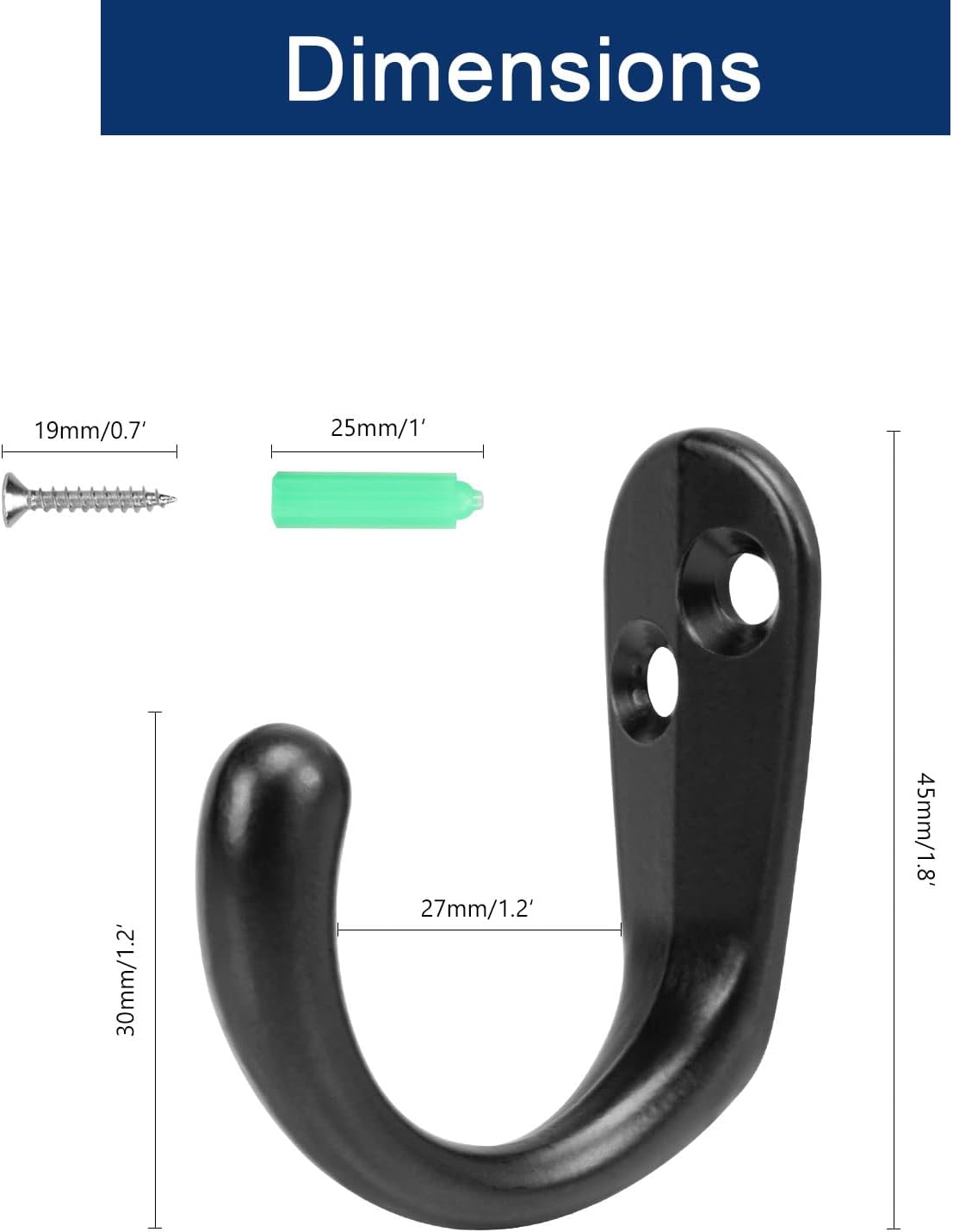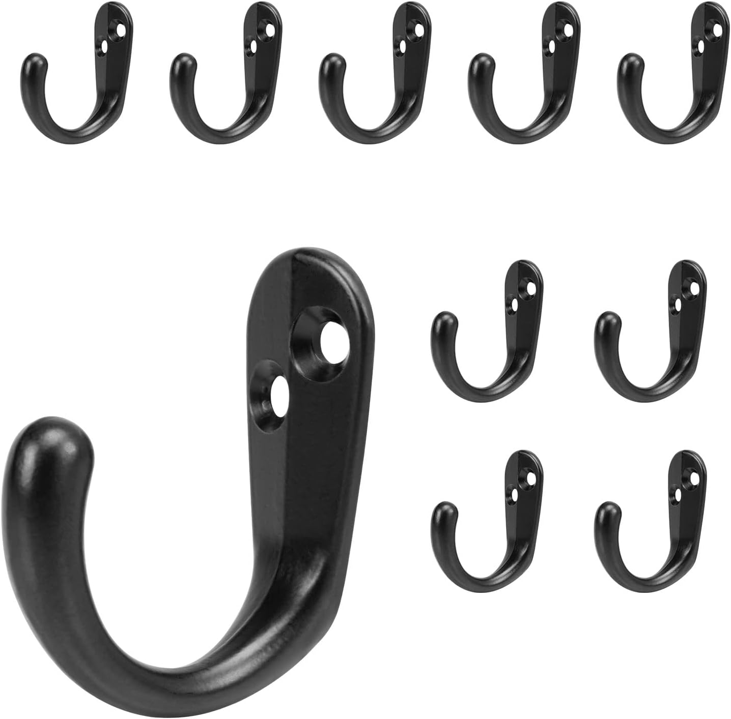 Coat Hooks Wall Mounted – Heavy Duty Metal Single Prong Robe Hanger Rustproof Wall Hooks for Towel Hat Key Bag on Bathroom, Kitchen, Livingroom(10 Pack, Matte Black)