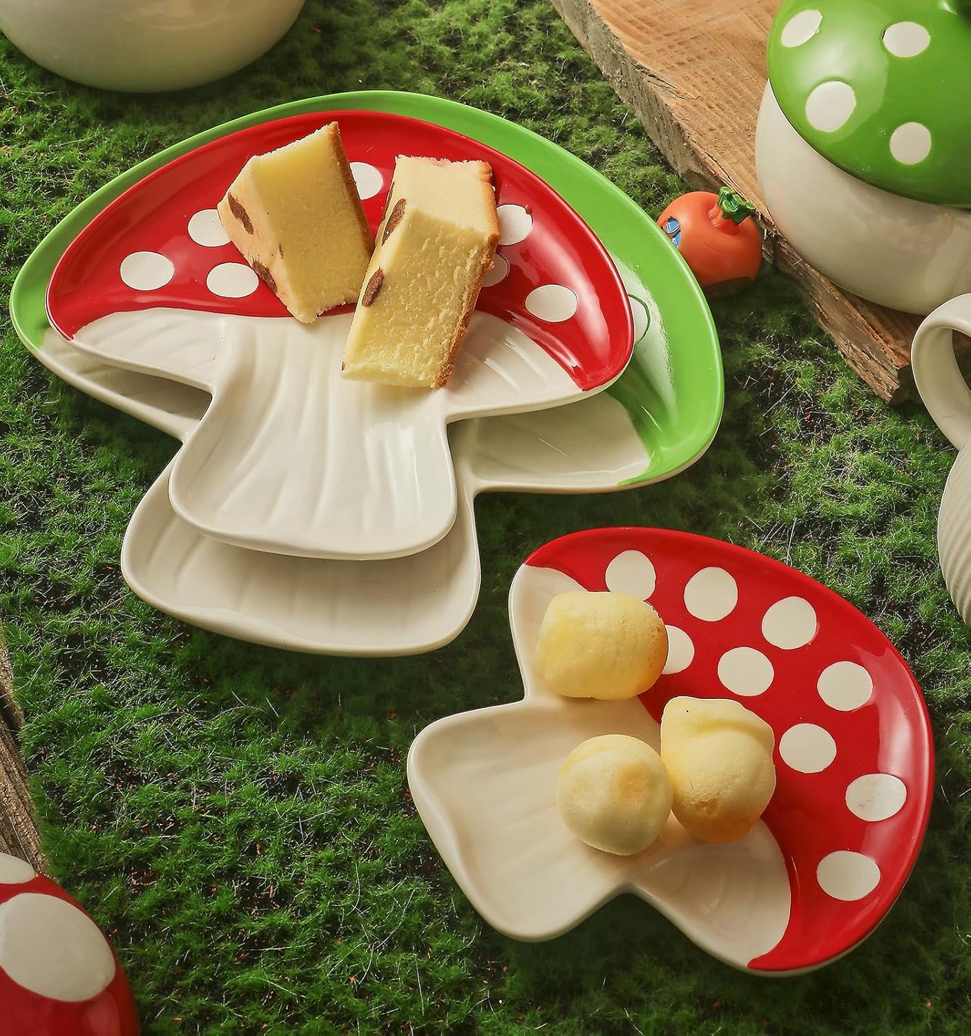 - 【Durable Material】: Made of porcelain for durability. Mushroom plate is lead-free and non-toxic, making it perfectly compatible with hot and cold foods without worrying about chips, scratches and cracks.