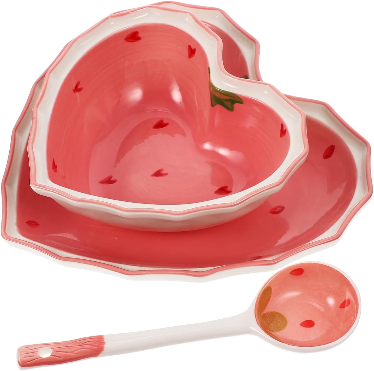 - Elegant design: This heart-shaped salad bowl set features an exquisite strawberry pattern, adding a touch of elegance to your dining experience;Multi-functional use